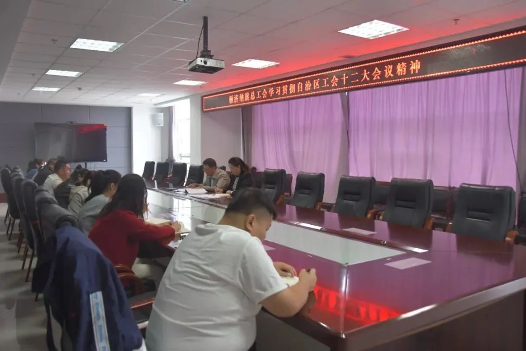 为全面深入学习领会自治区工会十二大精神,扎实推进学习宣传贯彻工作,近日,额济纳旗总工会召开学习贯彻自治区工会十二大精神工作部署会。全体干部职工参加会议。