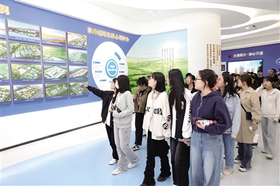 “工会帮就业”就业创业直通车带着求职者参观企业生态展览馆。