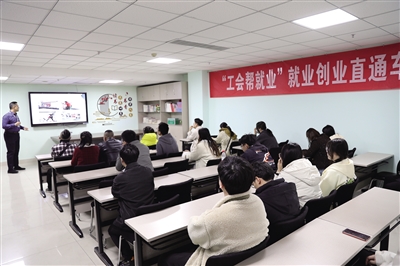 “工会帮就业”就业创业直通车带着求职者走进职工就业创业培训基地。