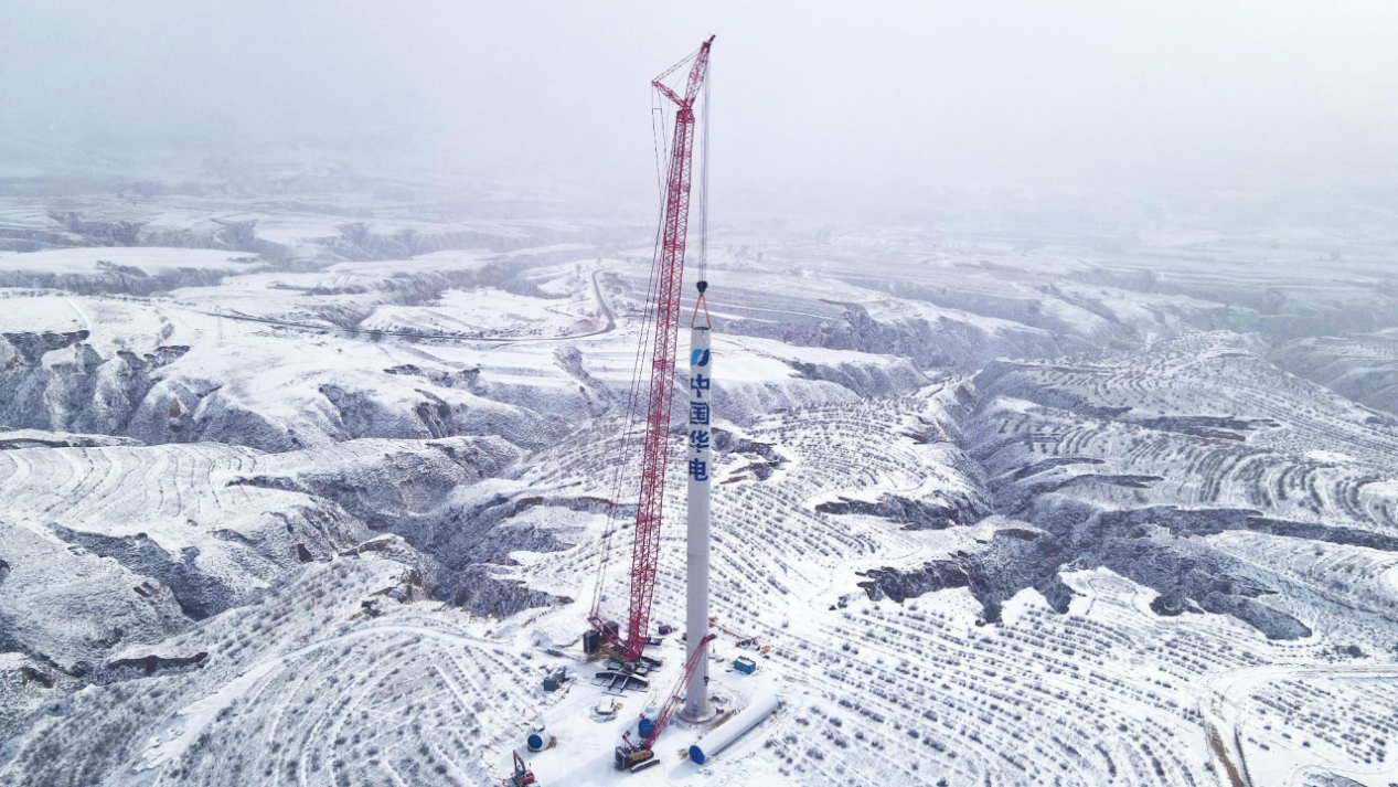 华电(内蒙古)新能源有限公司全力以赴推进项目工程建设,争分夺秒抢抓工期,确保年度建设目标按期圆满完成。施工现场,机器轰鸣、工人忙碌;会议室里,紧张而高效,大家汇报着当日的工程进度,梳理施工情况,针对出现的问题迅速解决。在项目建设中,引入无人机空中运输技术,每台无人机平均一天可运输300多张光伏板,有效解决了现场坡度陡、地貌复杂、安全风险系数高、人工搬运难度大的堵点问题,大大降低了人工成本。11月,公司圆满完成首台单机容量6.25MW的风电机组吊装任务,标志着项目建设又向前迈出了坚实的一步。