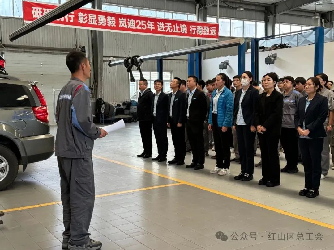 自治区工会十二大代表、全国五一劳动奖章获得者、赤峰岚迪汽车服务有限责任公司技术员王洪亮深入车间传达自治区工会十二大精神。