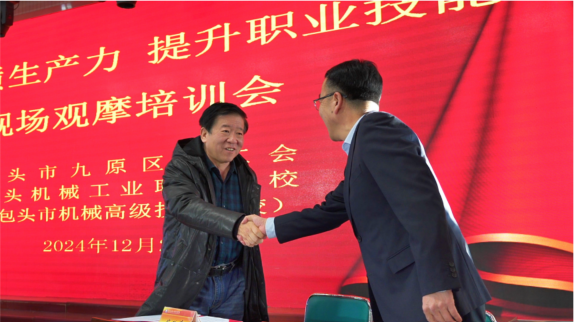 九原区总工会按照区委、区政府打造培养高技能人才高地的目标,积极对接包头机械工业职业学校,从前期搭建合作框架协议到今天正式挂牌成立了九原区职工职业技能实训基地,搭建起孵化拔尖技能人才平台,建立工会+学院职业技能提升双向交流机制,全力构建“培养圈、产业圈、生态圈”三圈融合技能引育体系。