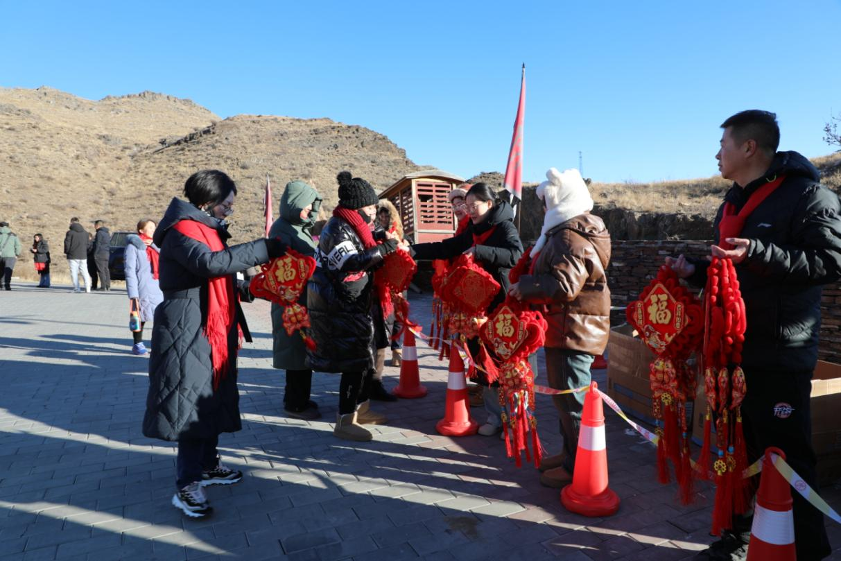 此次登高活动沿秦长城北门进行,全程约6公里,沿途设2个打卡点,每个打卡点都有工作人员为大家发放寓意着幸福吉祥的中国结和“福”字挂件,每个人的脸上都洋溢着幸福温暖的微笑。