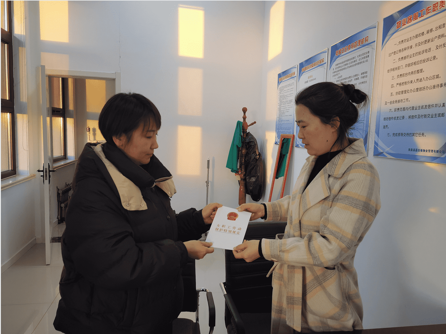 随后,工作组现场指导物业公司签订女职工权益保护专项集体合同,督促用人单位认真落实女职工“四期”的休息时间、休假等各项待遇的落实,从源头维护和保障女职工的合法权益和特殊利益不受侵害。
