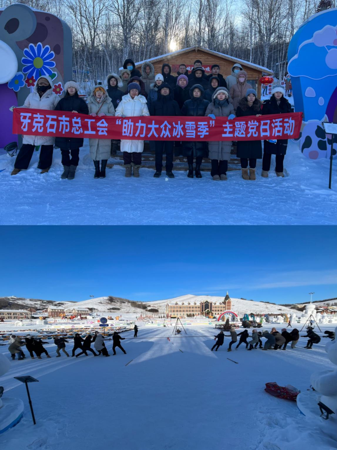 全市各级工会也充分利用所在地的冰雪活动场所陆续开展冰雪活动。阿荣旗总工会组织30余名职工开展“凌霜砺青春 沐雪萃英华”冰雪体验营活动,扎兰屯市总工会在金龙山滑雪场举办冰雪嘉年华职工冰雪拔河赛和雪上龙舟赛,扎赉诺尔区总工会在猛犸公园金龙湖组织全体职工开展“第十一届全国大众冰雪季---冰上陀螺比赛”活动,牙克石市总工会开展“助力大众冰雪季”主题党日活动,雪地摩托、雪地拔河、卡丁车、雪圈等趣味竞技项目一一上演。大兴安岭农垦集团公司诺敏河农牧场分公司举办了第三届冰雪文化节,开展了集雪雕艺术、民俗文化、体育竞技与美食盛宴于一体的冬日狂欢。