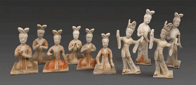 唐定远将军安菩(粟特人)夫妇墓出土的彩绘陶乐舞俑。(图片来源:洛阳博物馆)