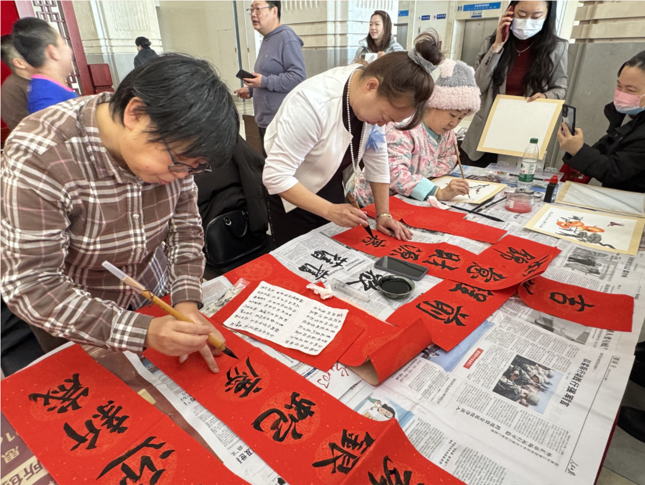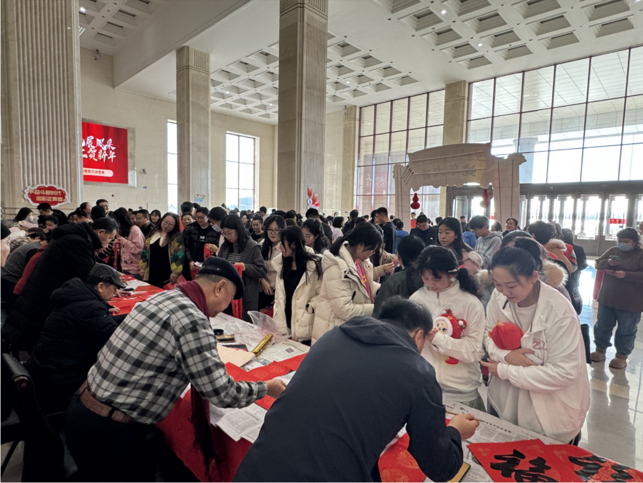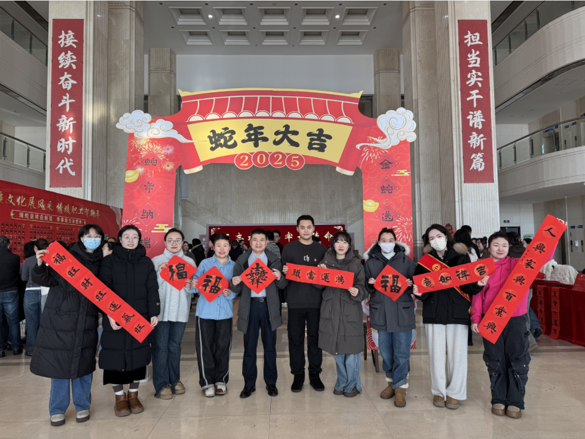 活动共分为“金蛇送福共团结”“福满新春写团圆”等数个版块,营造出热热闹闹迎新年、欢欢喜喜促团结的和谐美好氛围;在“金蛇送福共团结”区域,广大干部职工和青年朋友们踊跃答题,题目涵盖习近平新时代中国特色社会主义思想基础知识、铸牢中华民族共同体意识、第十一届全国大众冰雪季等内容,在赢得精美礼物的同时深化寓教于乐的学习模式;在“福满新春写团圆”区域,书法家协会的老师们挥毫泼墨,为大家书写春联和福字,美好的祝福和新春的吉祥跃然纸上,一幅幅春联和福字受到了大家的热烈追捧;在“投壶射礼庆吉祥”区域,干部职工通过投壶游戏感受传统文化魅力,自觉肩负起学习北疆文化、传承北疆文化的重任;在“剪纸传情送祝福”区域,干部职工、巾帼非遗传承者、青年志愿者欢聚一起,通过剪窗花、做葫芦、送祝福的形式将传统文化发扬光大。