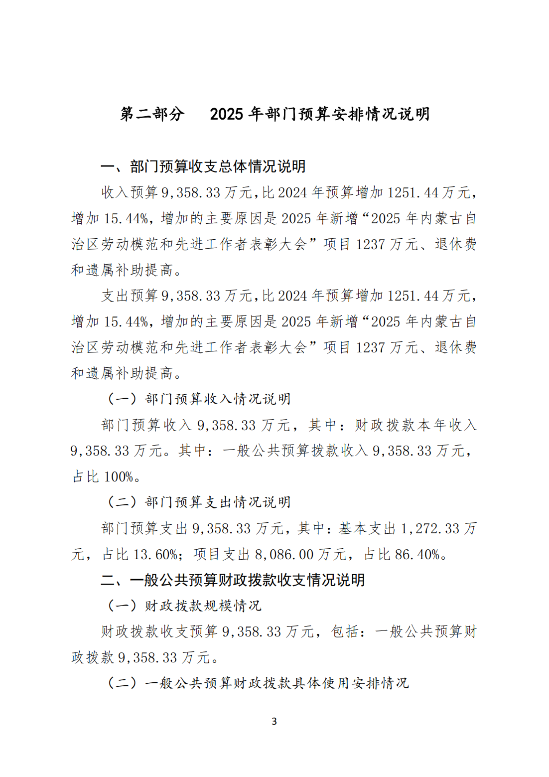 内蒙古自治区总工会 2025年部门预算公开报告