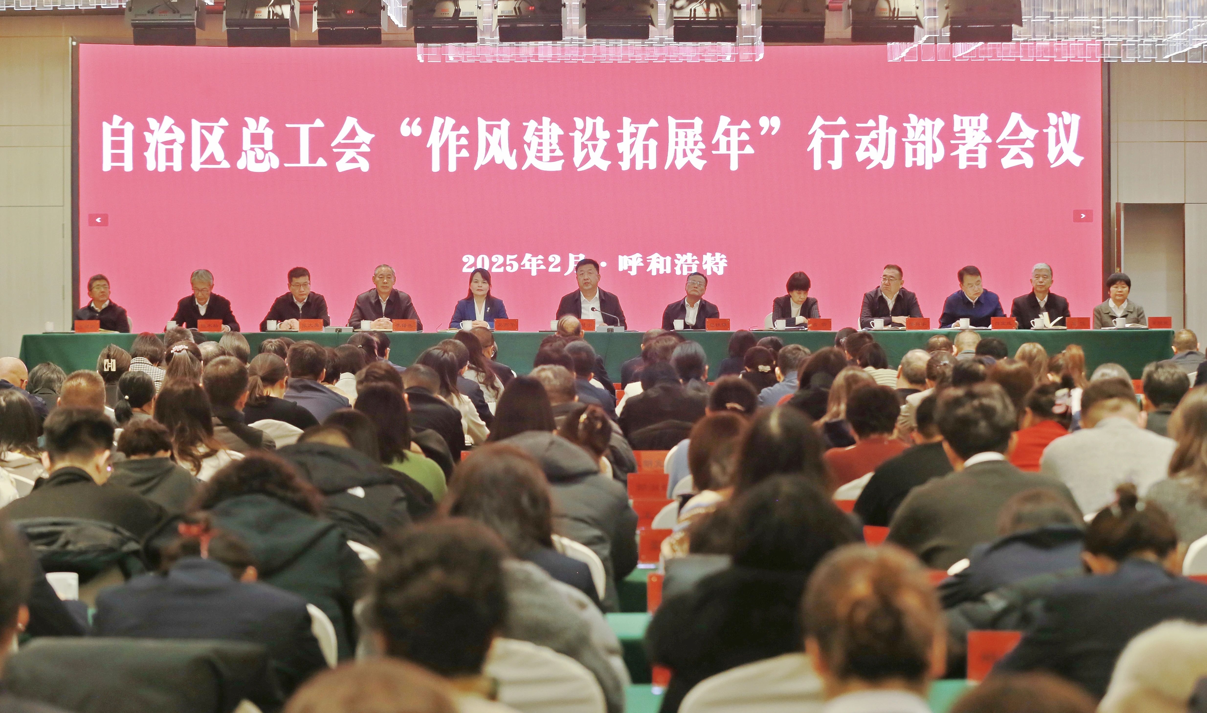 张慧宇强调,2025年是“十四五”规划收官之年,是自治区“闯新路、进中游”的重要一年,是中华全国总工会成立100周年,也是五年一次的全国和自治区劳模评选表彰年。做好新征程中的工会工作,必须持续开展“作风建设拓展年”行动,确保广大工会干部以更加过硬的作风在贯穿一条主线、办好两件大事、完成“五大任务”、实施“六个工程”、开展“六个行动”中展现新作为。要旗帜鲜明讲政治,在“感恩奋进”上再坚守,擦亮对党绝对忠诚的政治本色。树牢“大局”意识,时刻关注党中央强调什么、要求工会做什么,突出落实好《中共中央、国务院关于深化产业工人队伍建设改革的意见》及全总《关于贯彻落实党的二十届三中全会精神 在进一步全面深化改革 推进中国式现代化中充分发挥工人阶级主力军作用和工会桥梁纽带作用的意见》。夯实“规矩”意识,建立经常性和集中性相结合的纪律教育机制,持续整治形式主义为基层减负,将更多资金用于服务职工、维护权益和对下补助。强化“交卷”意识,围绕自治区党委完成“五大任务”、接续实施“六个工程”、组织开展“六个行动”的重大部署和自治区政府工作报告确定的11个方面重点工作,及全总“559”工作部署的新要求,筹备开好自治区总工会十二届二次全委会,抓好全区工会重点亮点工作项目的落实,创出具有内蒙古工会特色的好经验、好做法。