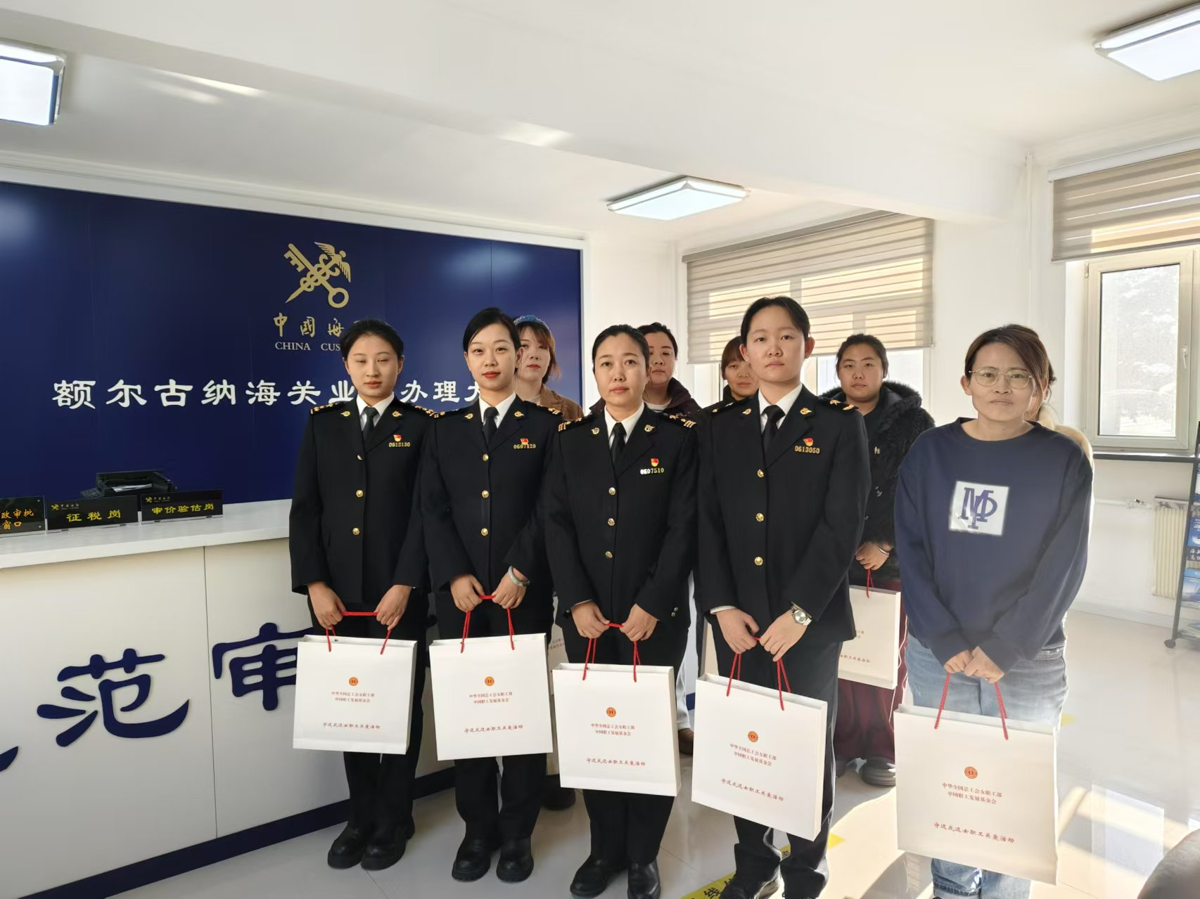 为切实加强对守边戍边女性职工的关心关爱,2月10日,额尔古纳市总工会开展“情系边关 温暖巾帼”守边戍边女职工关爱活动。本次活动由中华全国总工会女职工部、中国职工发展基金会联合发起,为黑山头口岸、室韦口岸的18名女职工配发了羊绒手套、围巾、帽子套装。