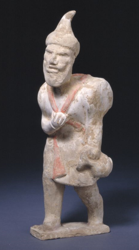 唐代大食人俑,高28厘米。大食是唐朝人对阿拉伯人的专称。这个头戴缠巾、深目高鼻,作长途跋涉状的大食人俑反映了早期阿拉伯商人经由丝绸之路在华活动的形象。(图片来源:故宫博物院官网)