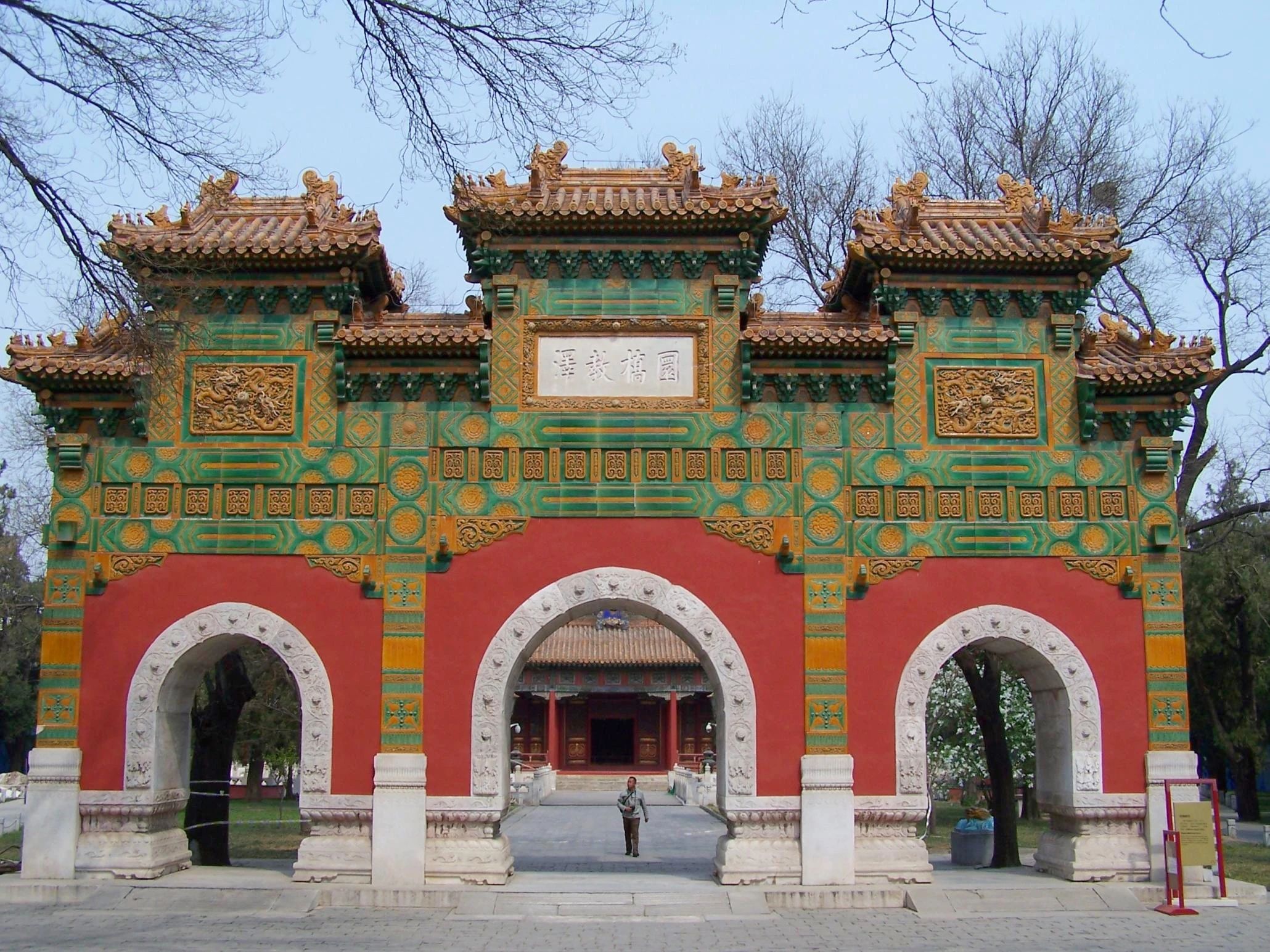 始建于元代至元二十四年(1287年)的国子监是元明清三代国家设立的最高学府,图为国子监内的琉璃牌坊。(图片来源:北京日报)
