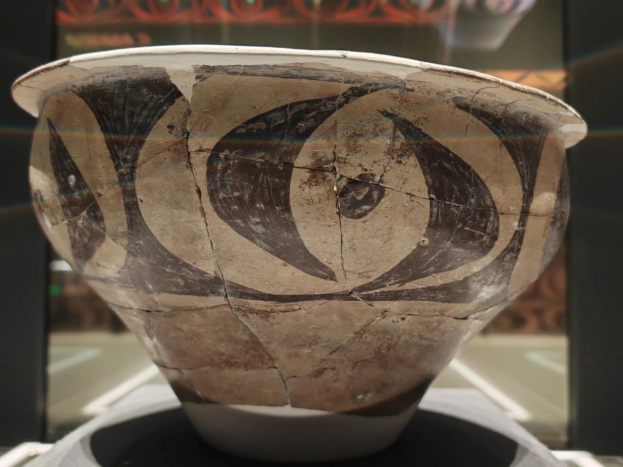 庙底沟遗址出土的双旋纹彩陶盆。作者供图