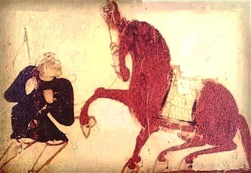 壁画中的吐谷浑人驯马场景。(图片来源:青海省博物馆官微)
