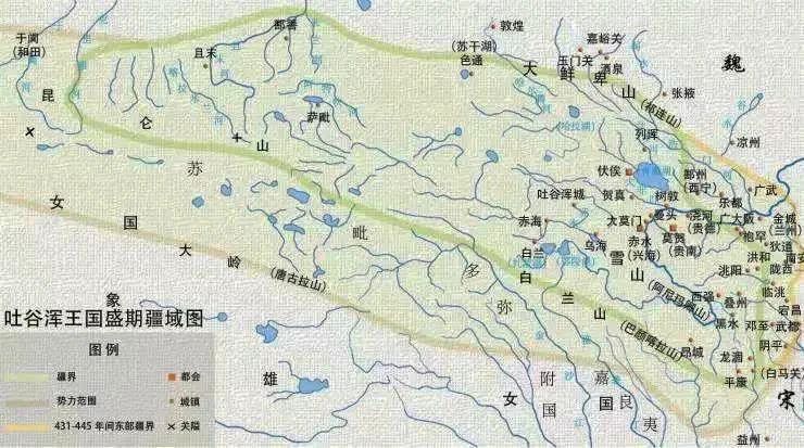 吐谷浑王国盛期疆域图。(图片来源:“凉州文化研究”官微)