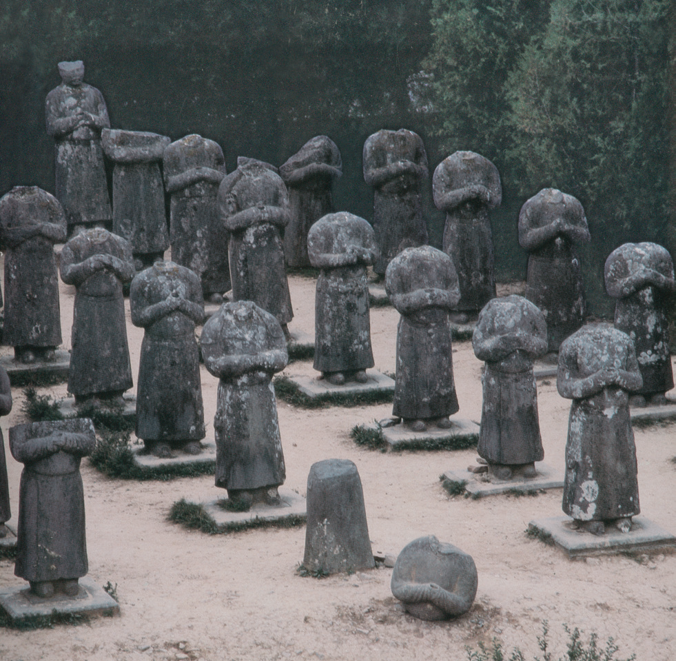 唐代以前,以皇帝陵寝为代表的各类墓葬前几乎不见石质人像,而多是瑞兽和华表、龟趺座石碑等纪念性建筑。即便到了唐代,开国皇帝高祖李渊的陵前也并未设置石人林立的蕃酋像。