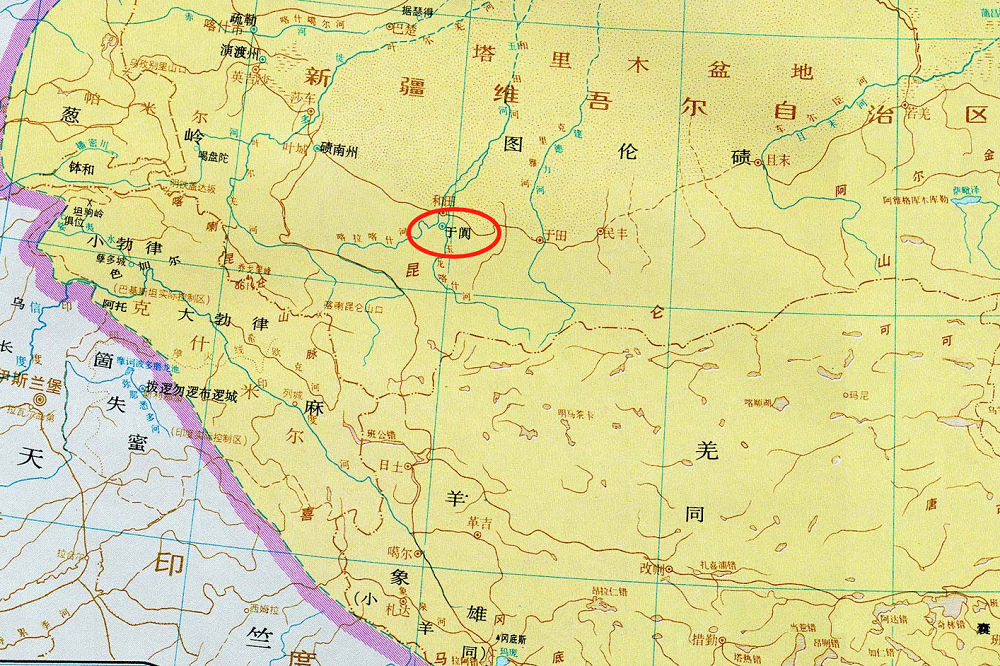 唐朝时期的于阗。(图片来源:谭其骧《中国历史地图集》)