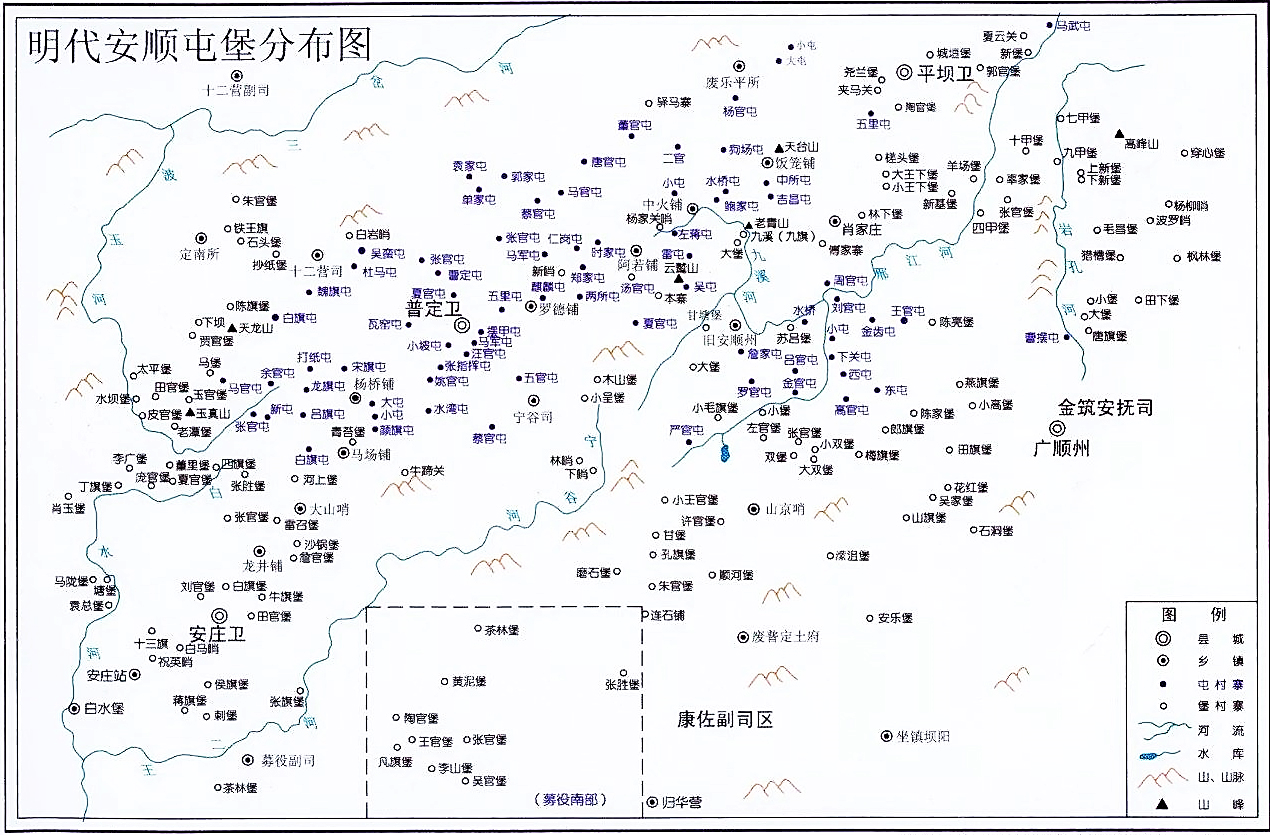 清代时,安顺屯堡已名存实亡,不再具有屯田护军的功能,但其村寨名称却保留了下来。