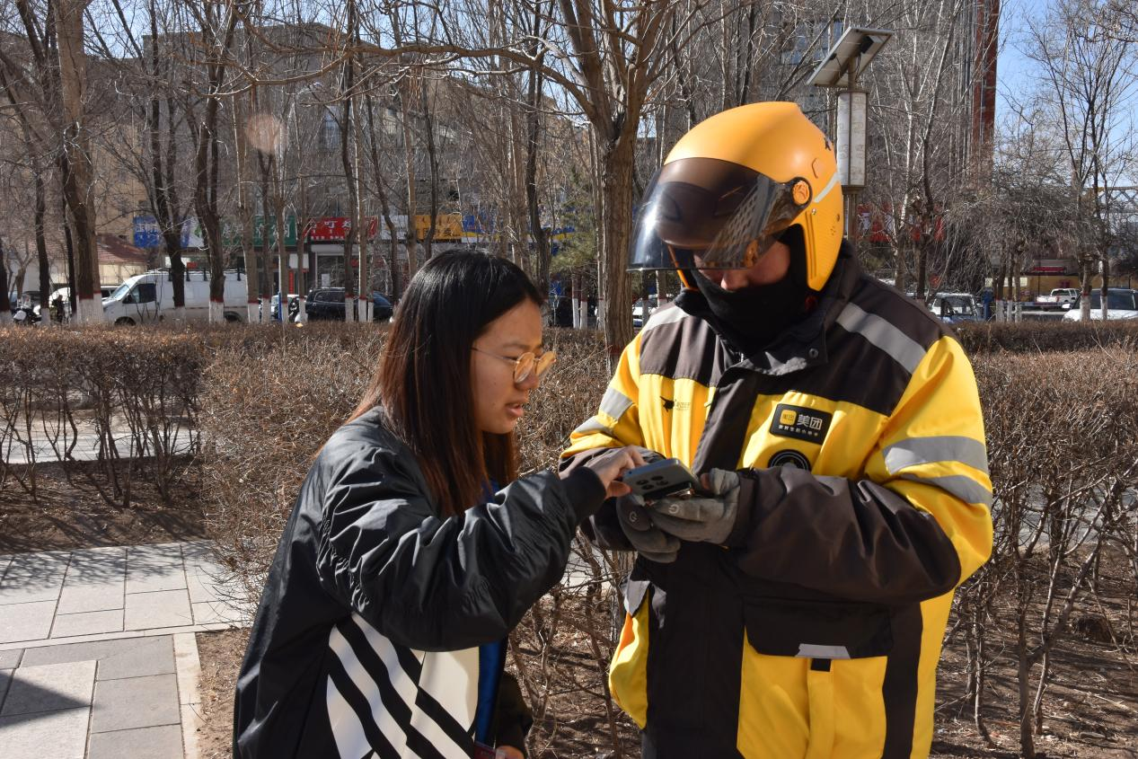 活动中,工作人员向骑手们讲解入会的好处、享受的服务等,现场指导新入职的骑手通过北疆工惠进行实名认证,并为大家发放了精心准备的护膝护腿和防寒手套等温暖礼包。