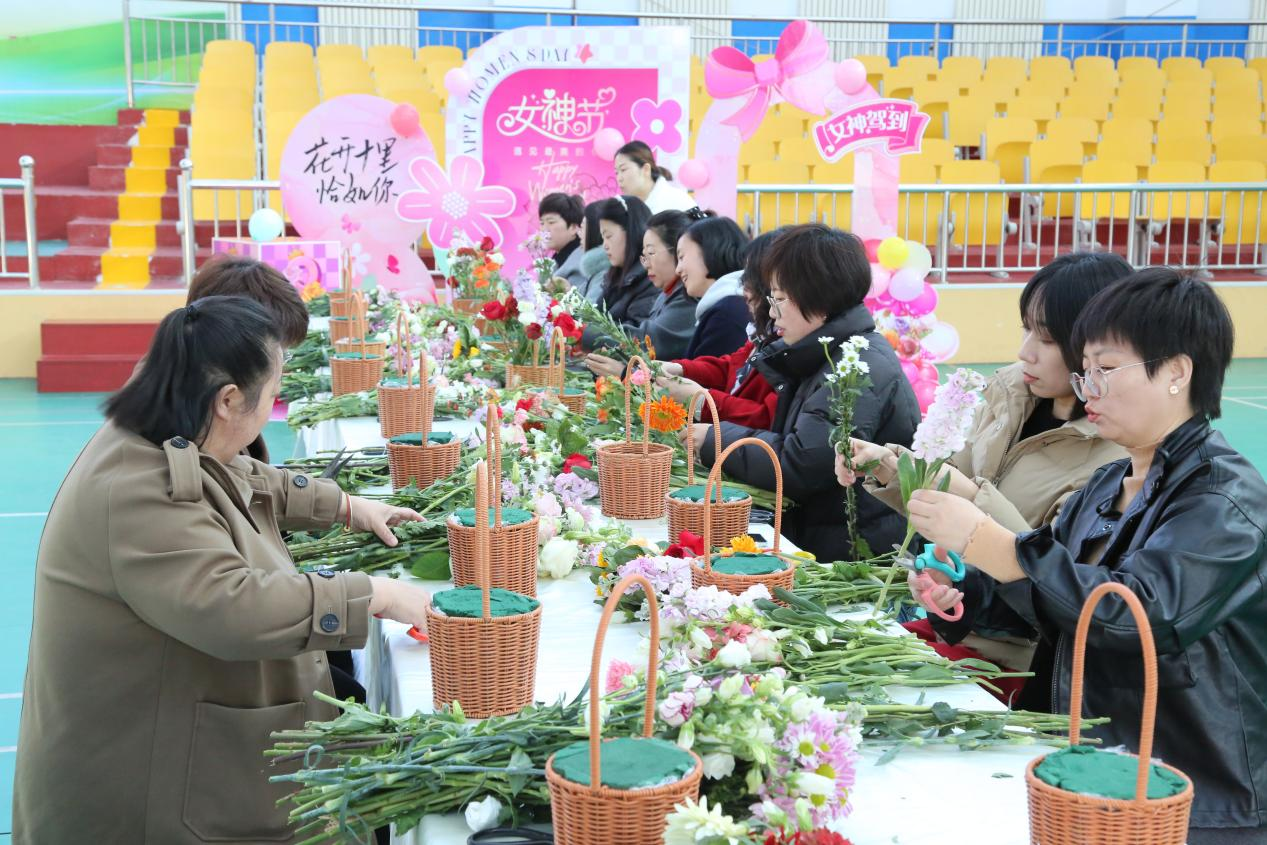 活动现场,花香四溢,五彩缤纷的康乃馨、玫瑰、向日葵、矢车菊、风信子等鲜花摆满花桌。花艺师从花卉识别、色彩搭配,到插花技巧、造型设计进行了细致讲解,让现场职工结合手中的花卉特点和各自的审美情趣自由发挥,做自己的花艺师。大家一边插花,一边交流生活点滴,欢声笑语不断,营造出温馨的节日氛围。