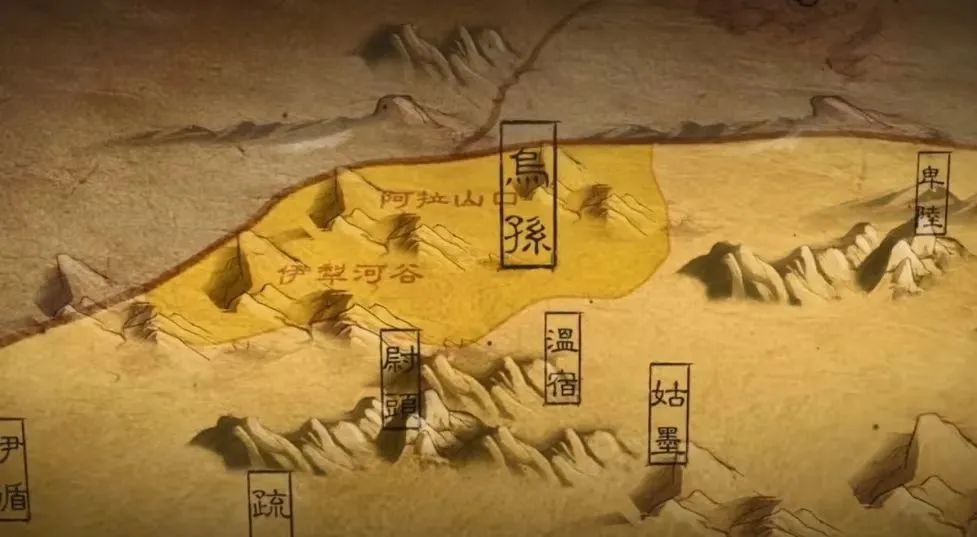 乌孙国位置示意图。(图片来源:纪录片《河西走廊》截图)