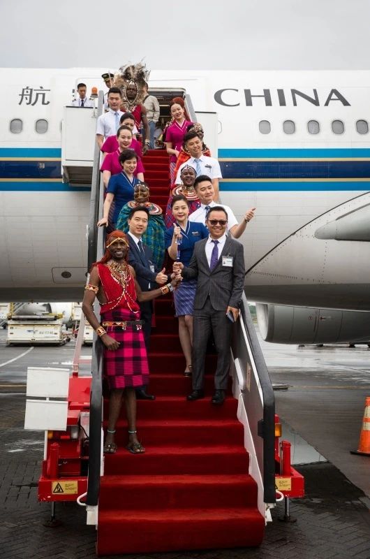 2019年,中国南方航空公司运营的首条由湖南直飞非洲大陆的定期航线抵达肯尼亚首都内罗毕,中国又多了一条通往非洲的“空中走廊”。新华社记者 吕帅 摄