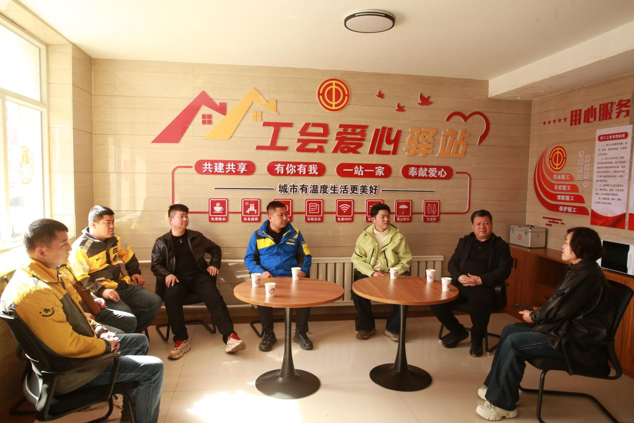 3月 11 日,杭锦后旗总工会、旗委社会工作部联合开展关爱服务新就业形态劳动者会商机制恳谈会,通过采取实地观摩驿站、座谈交流等方式,倾听心声、了解诉求,用实实在在的举措为他们托起“稳稳的幸福”。