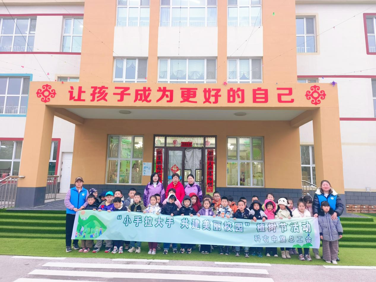 为深入践行绿色发展理念,增强幼儿环保意识,在第47个中国植树节到来之际,科右中旗总工会走进科右中旗塔拉幼儿园开展“小手拉大手,共建美丽校园”植树节活动,为校园增添盎然绿意。