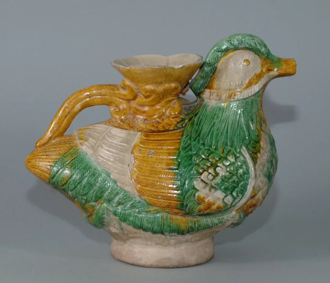 ▲辽三彩鸳鸯壶,出土于赤峰松山区王家店辽墓,为“辽三彩”的精品之作。(图片来源:赤峰博物馆官网)