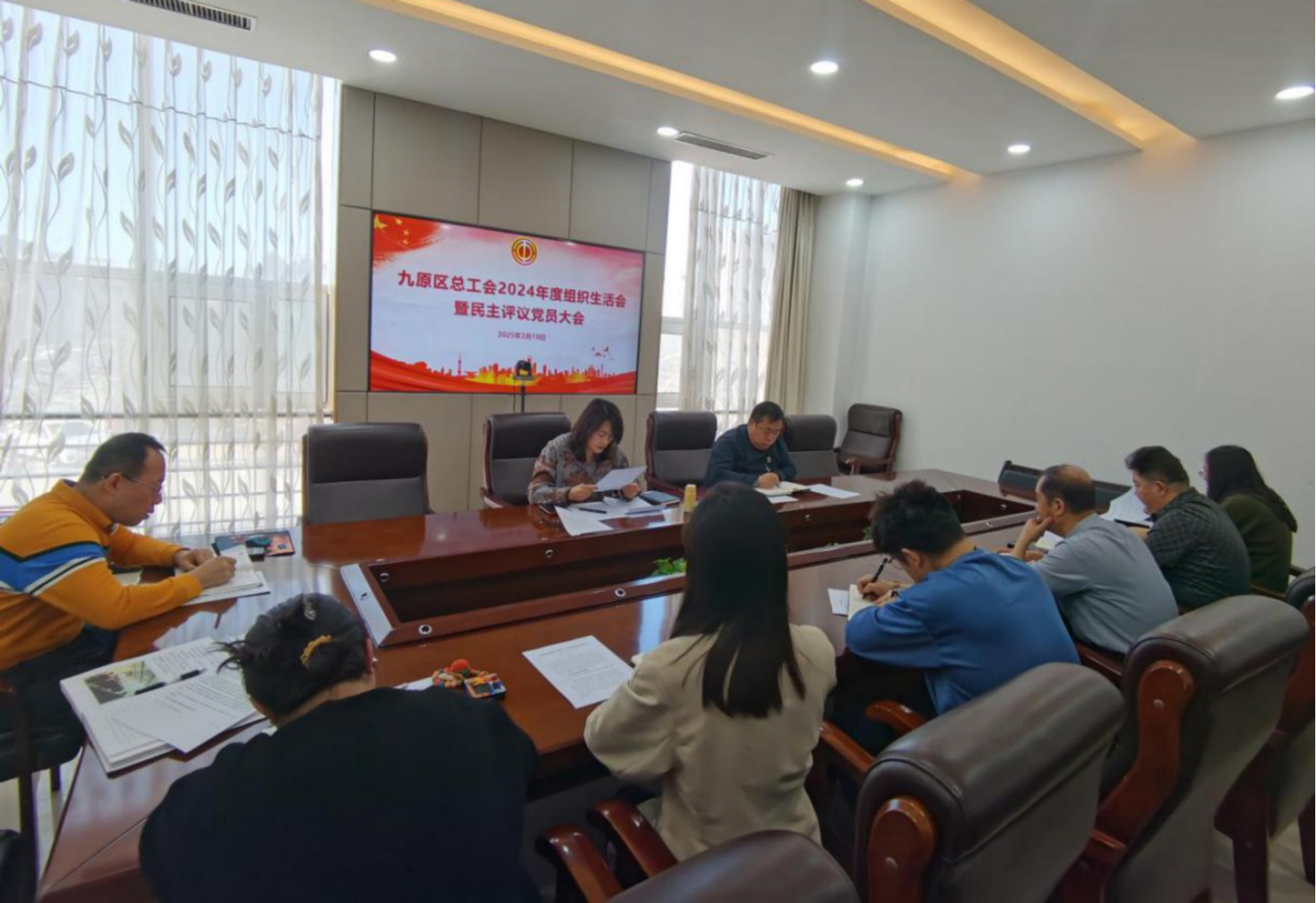 组织生活会上,九原区总工会党支部领导班子作对照检查发言,随后,支部委员和党员们依次进行对照检查发言,开展批评与自我批评。民主测评环节,党员实事求是进行民主测评,支委会以民主测评和党员日常表现相结合,最终评定优秀党员3名。
