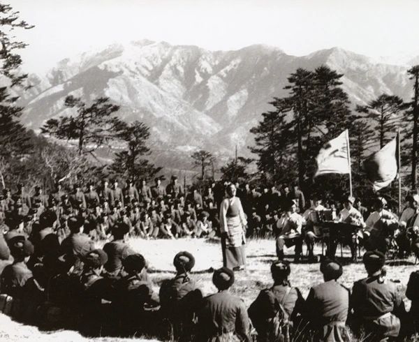 ▲20世纪70年代末,才旦卓玛到边防为部队官兵演出,当时没有麦克风,露天场地便是舞台。(图片来源:中国文艺网)