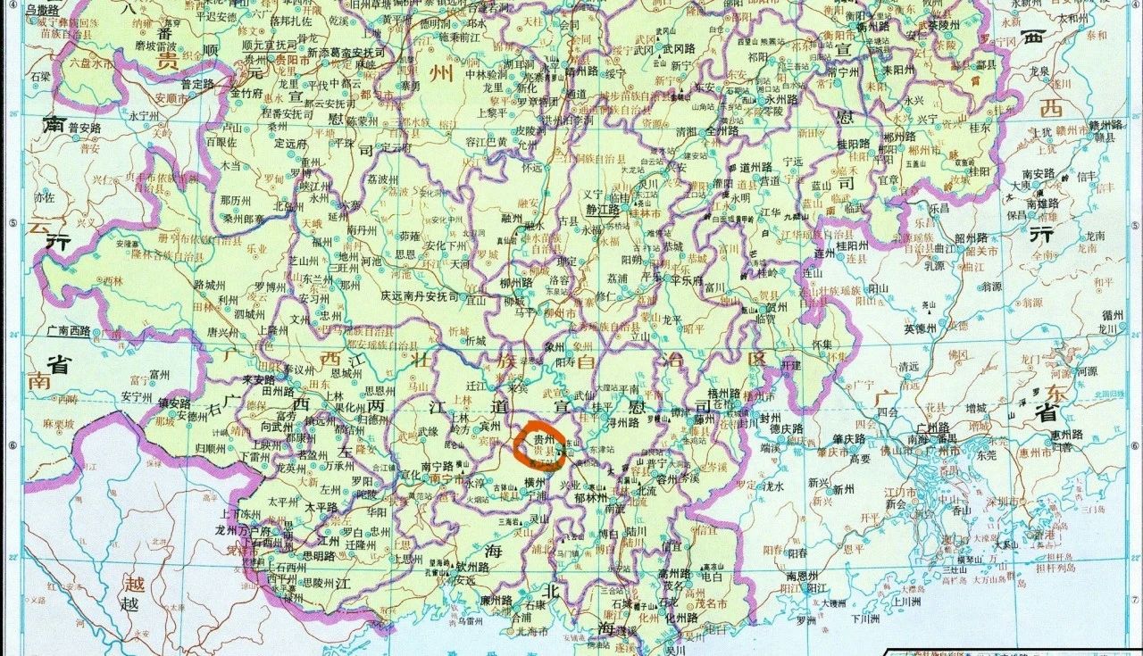 ▲元朝时期的贵港。(图片来源:谭其骧《中国历史地图集》)