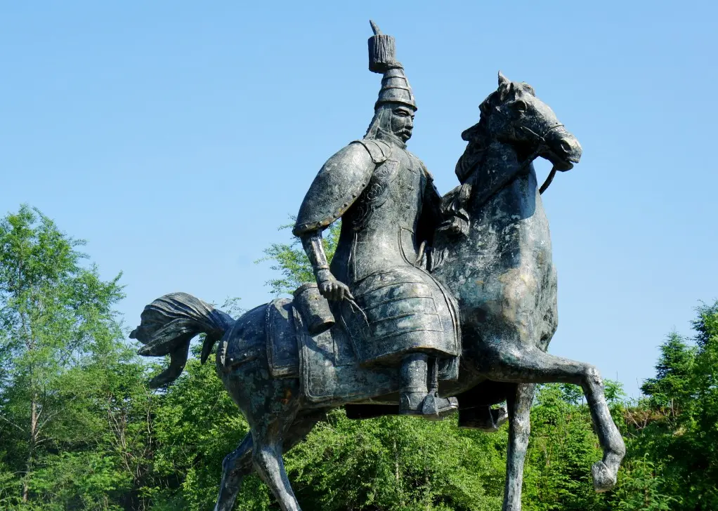 ▲努尔哈赤骑着大青马、带着黄犬的雕塑。(图片来源:澎湃网)