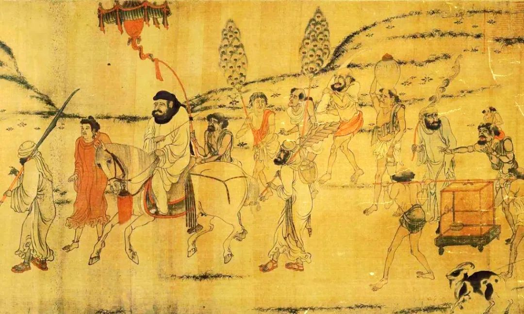 长安城的春日,一队风尘仆仆的异域车队正穿行在朱雀大街上。他们身着斑斓服饰,捧着洁白象牙、牵着花斑羊,满载香料、琉璃器、珊瑚、孔雀羽翎等宝物,引得长安百姓驻足惊叹。