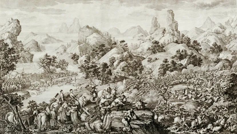 ▲《平定准格尔得胜图》中黑水解围的场景。(图片来源:故宫博物院)