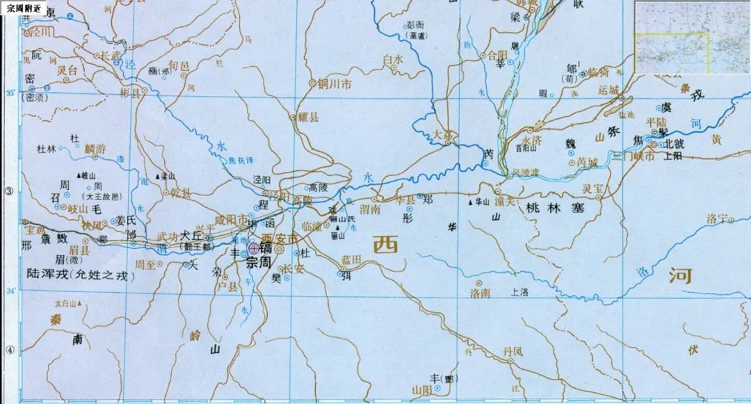 ▲西周宗周附近地区示意图。(图片来源:谭其骧《中国历史地图集》)