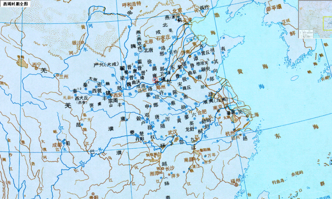 ▲西周时期封国局部示意图。(图片来源:谭其骧《中国历史地图集》)