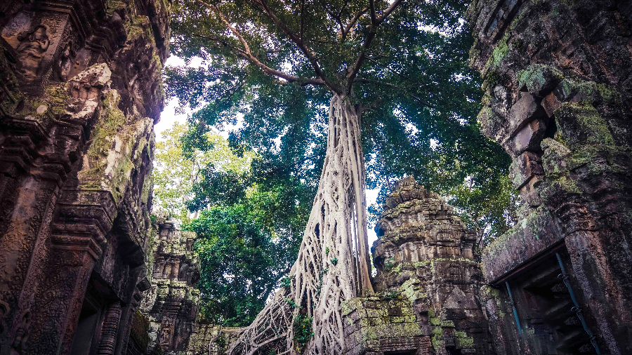 ▲柬埔寨暹粒吴哥古迹中拍摄的吴哥寺景区风光。(新华社 李玉辉 摄)