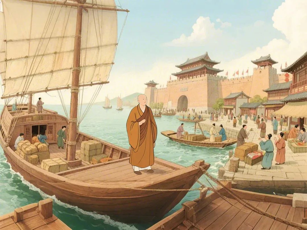▲义净乘船。(AI制图)