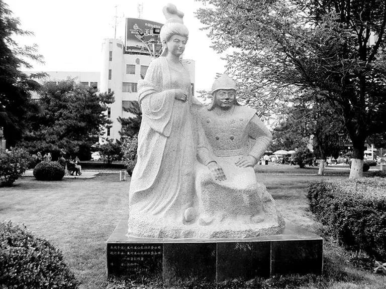 ▲弘化公主与诺曷钵雕塑。(图片来源:兰州晨报)