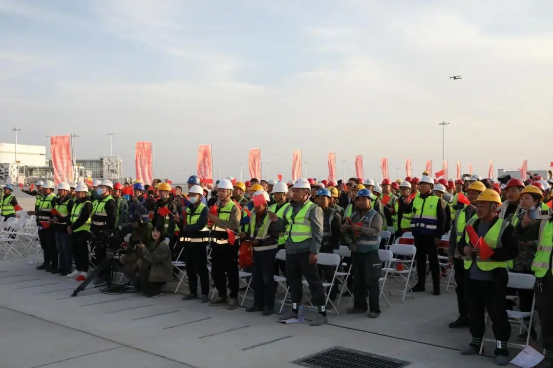 演出结束后,建设者们有序离场。舞台灯光渐暗时,远处航站楼工地依然闪烁着光亮。夜幕下,焊花与星光交相辉映,奏响新时代的劳动赞歌。