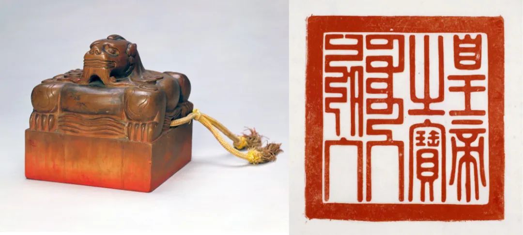 ▲金龙纽“皇后之宝”,满汉文篆书。(图片来源:故宫博物院)