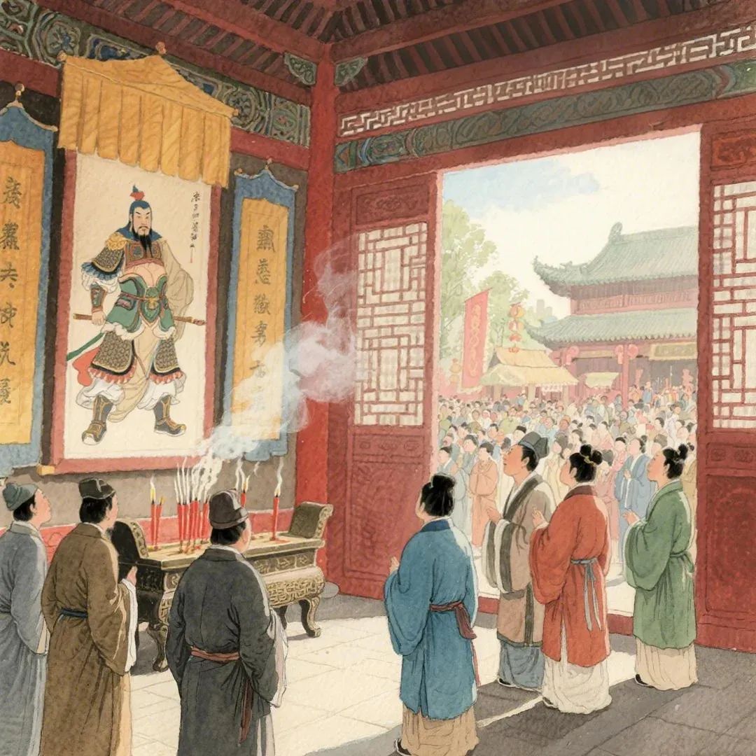 ▲百姓祭祀岳飞,香火不断。(AI制图)