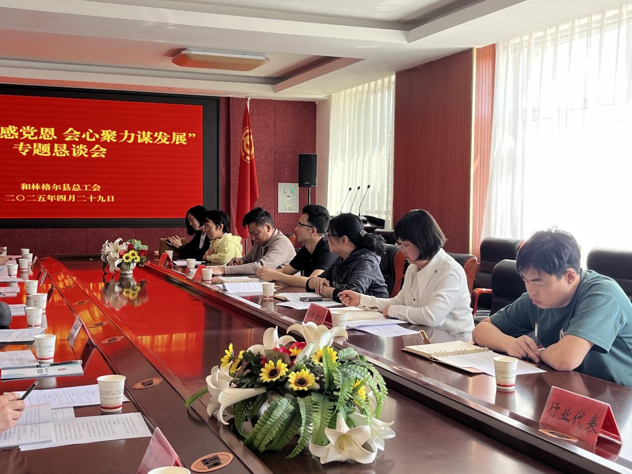 4月29日,和林格尔县总工会组织召开“工话巨变感党恩,会心聚力谋发展”专题恳谈会。