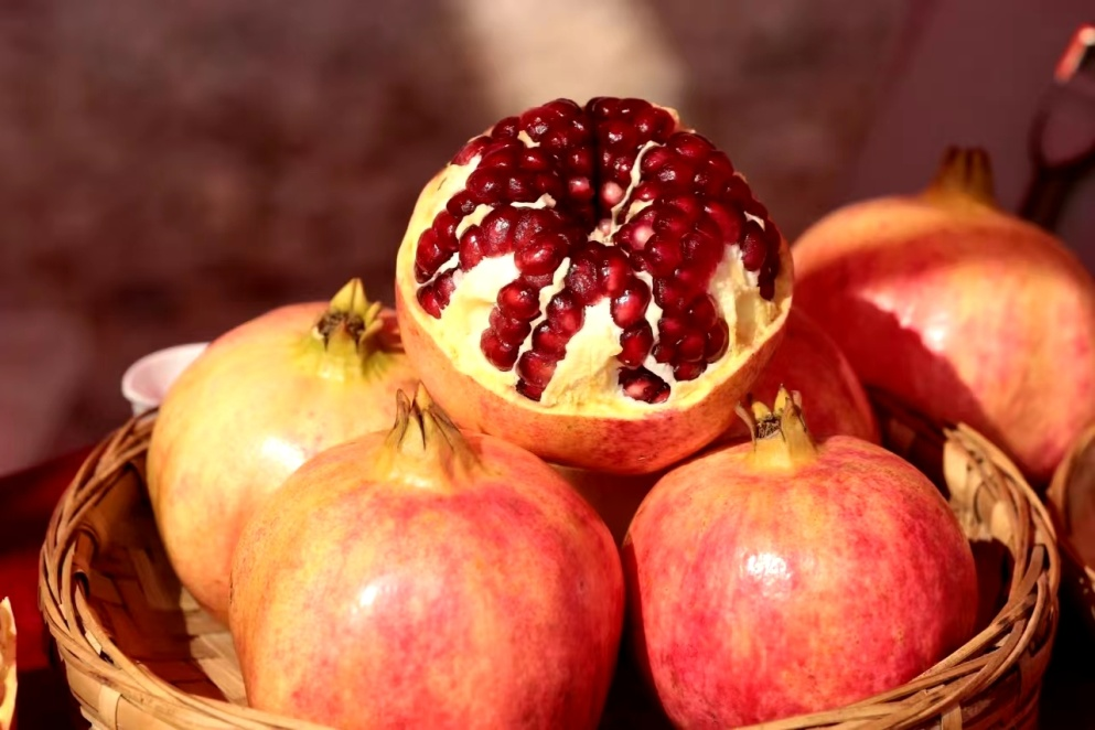 ▲新鲜饱满的石榴。(图片来源:人民网 黄正伟 摄)