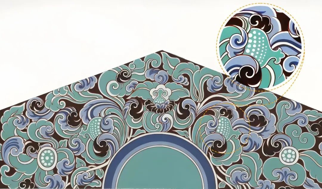 ▲初唐莫高窟第209窟,葡萄石榴纹藻井图案复原。