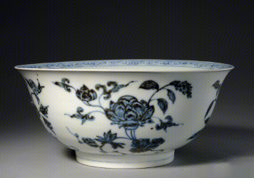▲明代青花折枝牡丹石榴纹碗,故宫博物院藏。