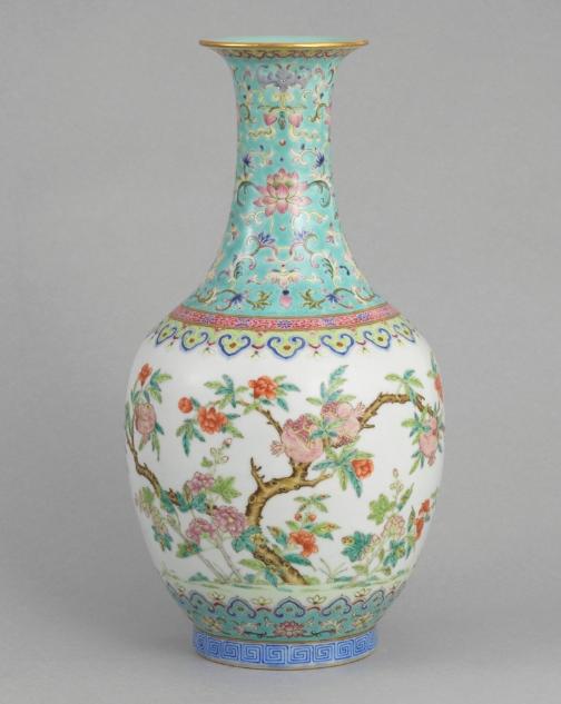 ▲清道光,粉彩石榴纹撇口瓶,故宫博物院藏。