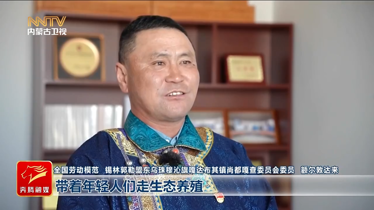 全国劳动模范 锡林郭勒盟东乌珠穆沁旗嘎达布其镇尚都嘎查委员会委员 额尔敦达来 带着年轻人们走生态养殖、科学养殖的道路,让牧民的腰包鼓起来、让他们富起来。守好草原、守好绿色,就是守好群众的幸福生活。