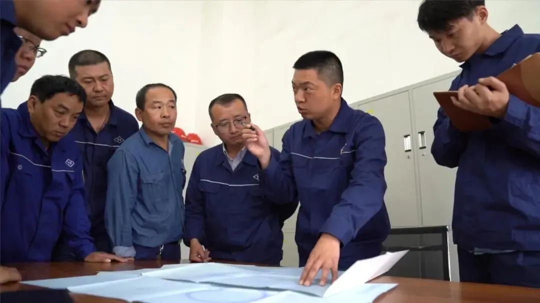 褚建华与同事探讨技改方案。(资料图)